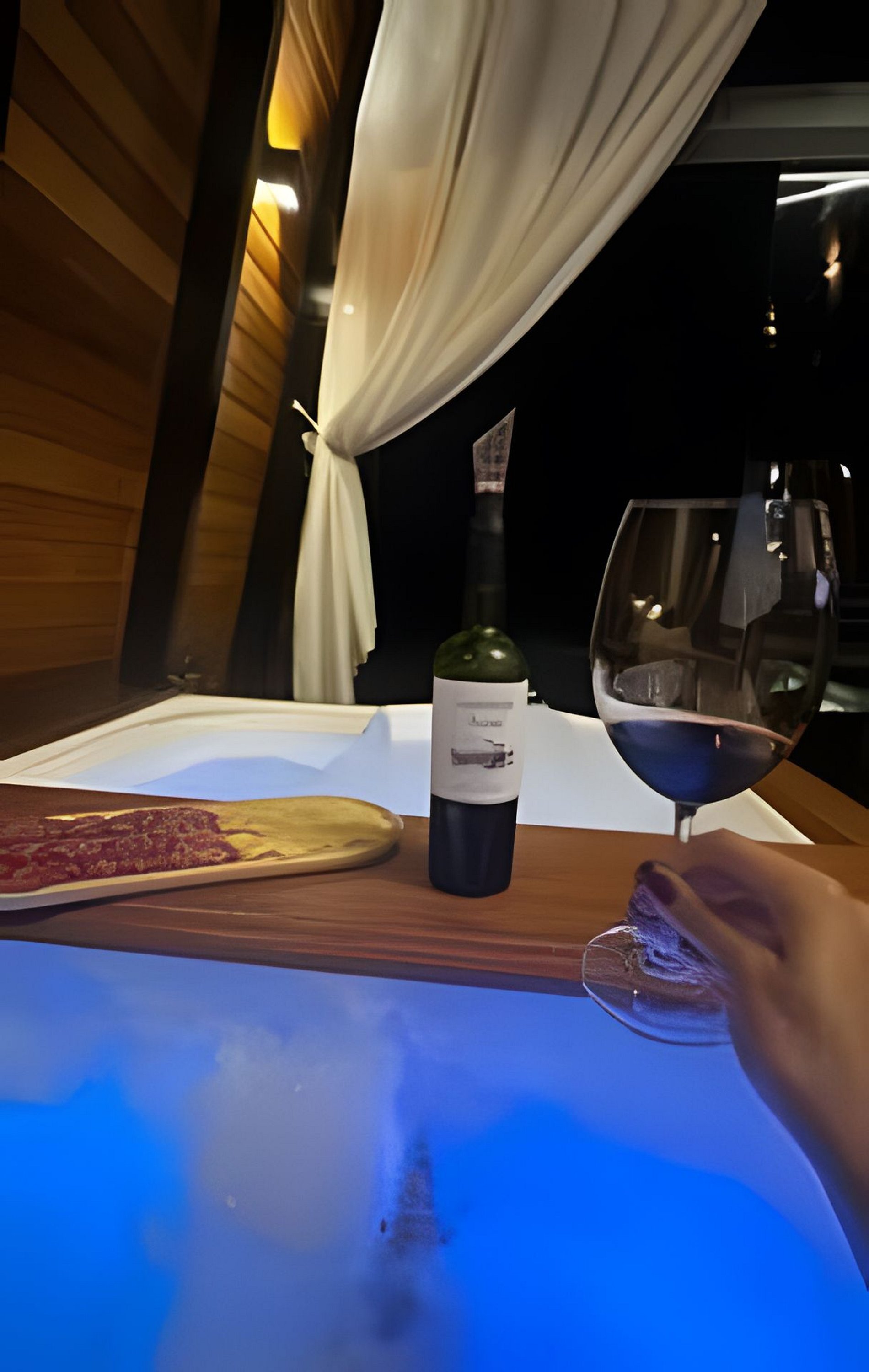 Relaxante banho de ofurô ou Jacuzzi com hidromassagem,