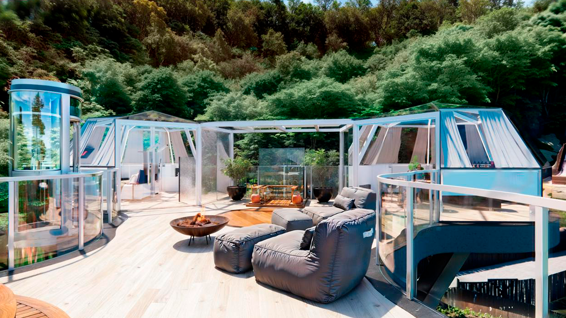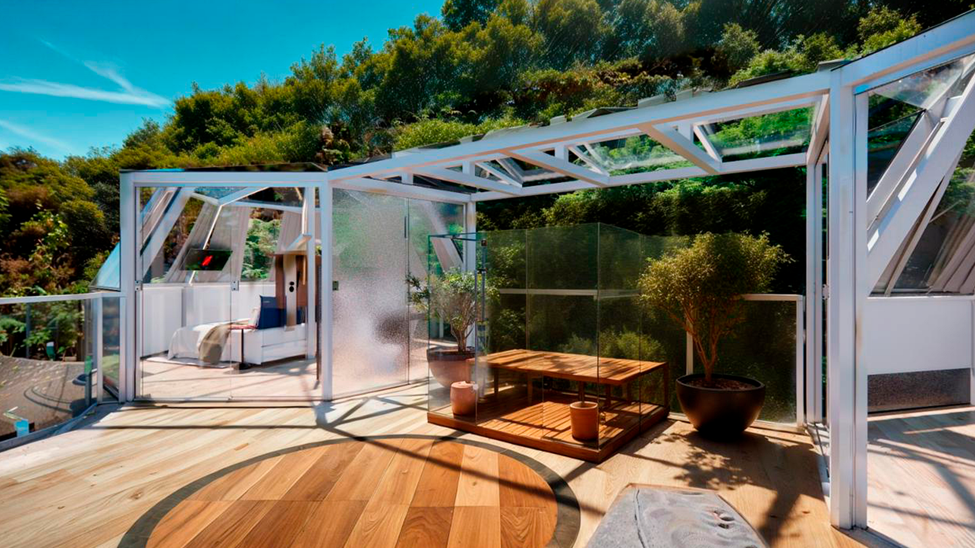 Sauna privativa (toda de vidro ou em formato de baú de madeira),