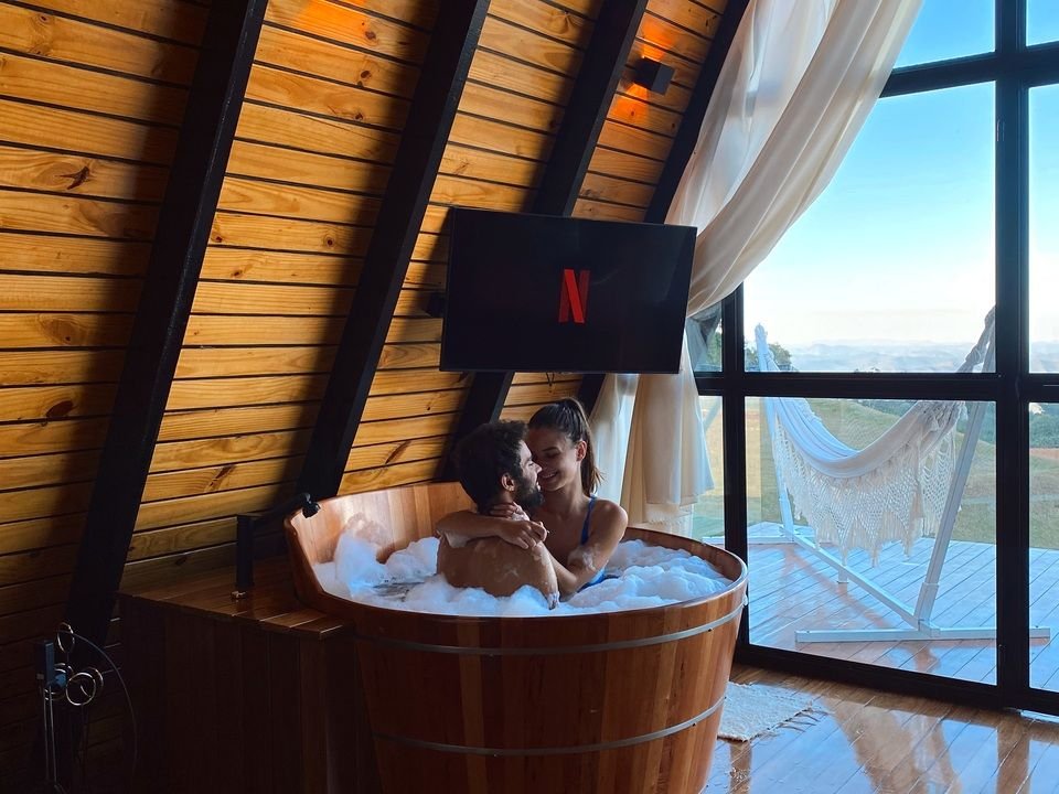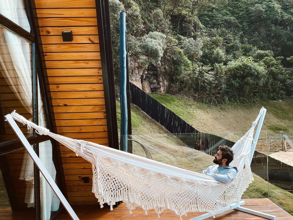 Nosso Chalé de Cima no tradicional formato A-frame tem o diferencial de ser suspenso com sua fundação elevada dando a sensação de flutuar no Horizonte, inspirada nos chalés suíços com um toque Brasileiro, comporta até dois hospedes. e por estar em uma ponta nas alturas, tem uma visão de mais 210 graus que vai da cidade de Ouro Preto-MG passando por Mariana-MG e seguindo para o horizonte de montanhas de se perder a contagem e visibilidade .